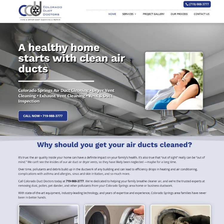 It provides professional air duct, dryer vent and ventilation system cleaning, diagnostics, odor control, and repair services for Colorado Springs.