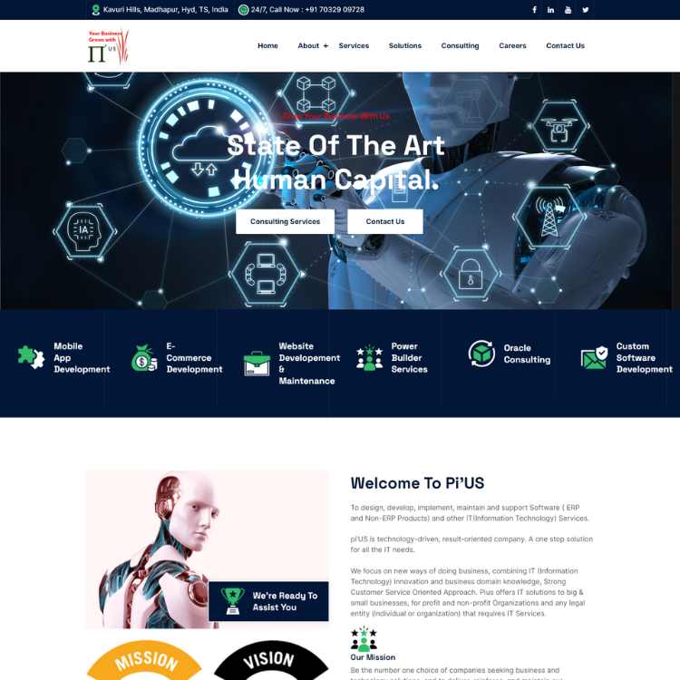 piUS is an India-based IT & consulting company in Hyderabad.Custom software development (ERP/non-ERP).
